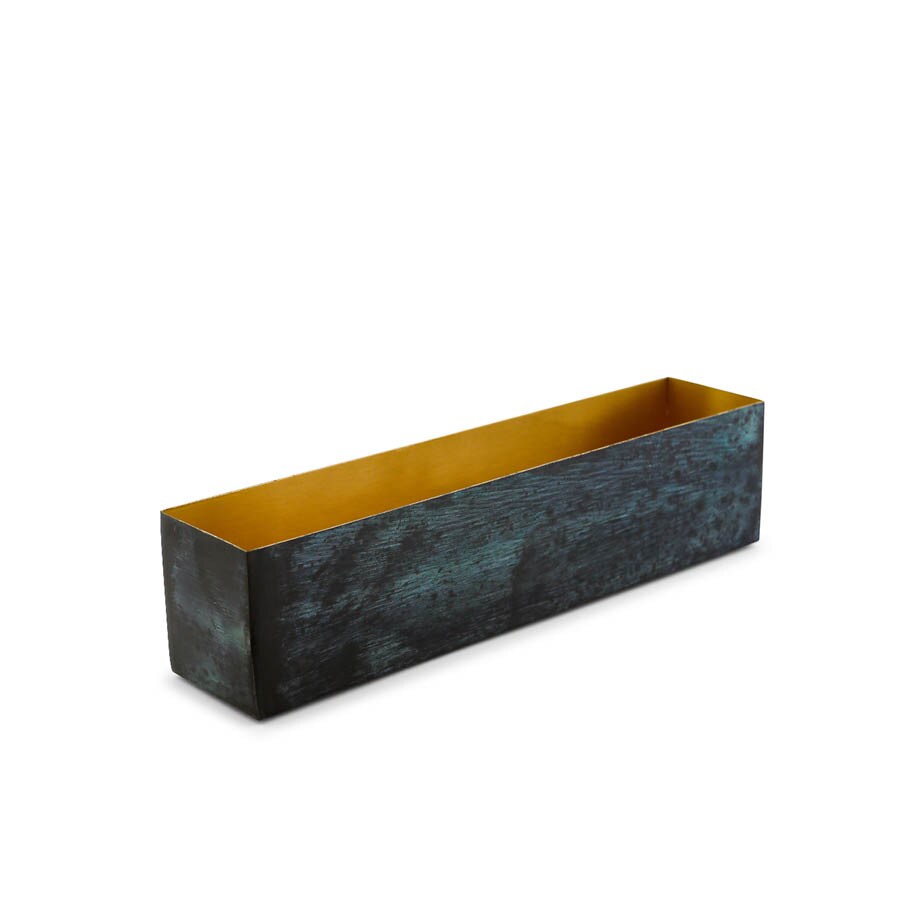 The vase is made of brass. The outside has a beautiful patina.
