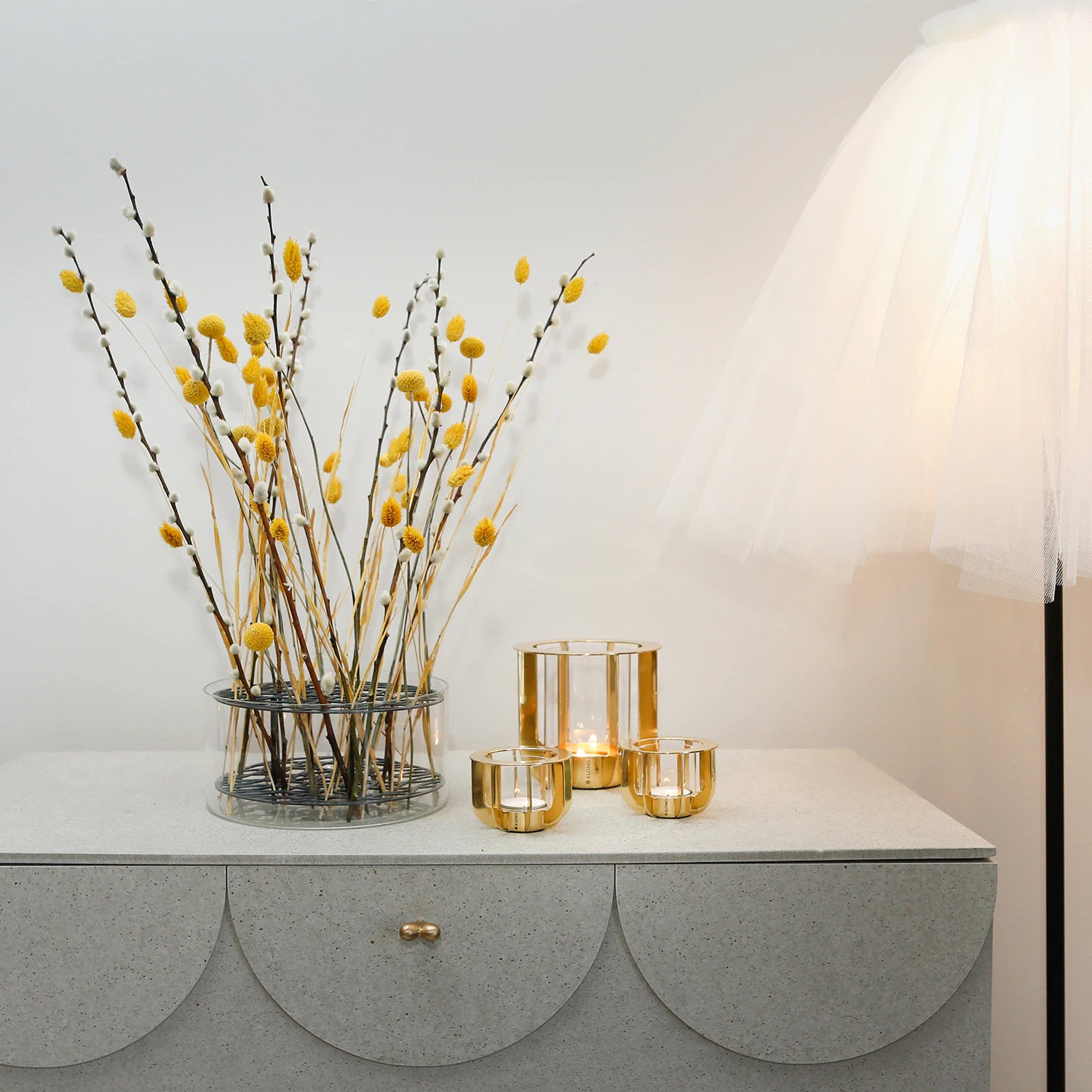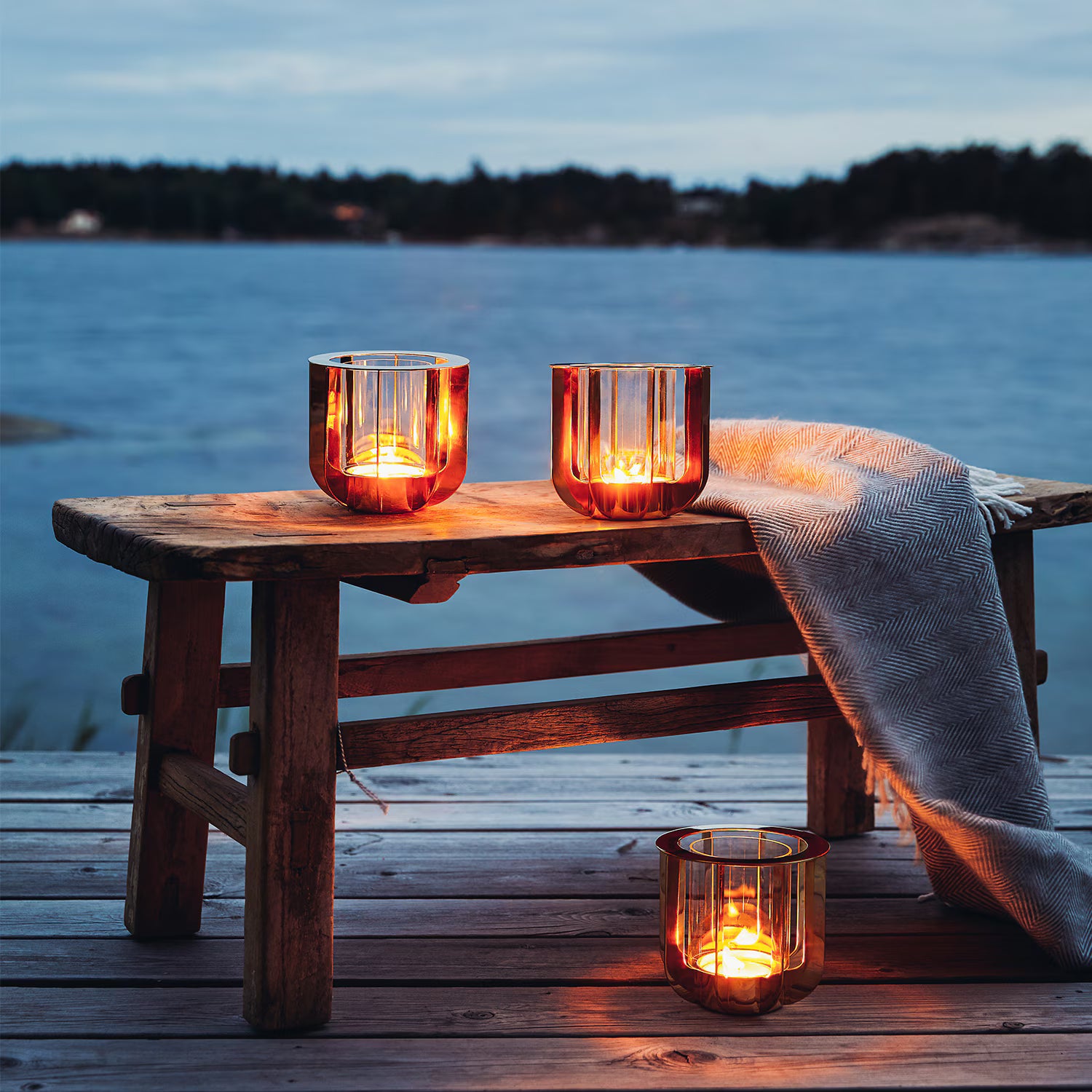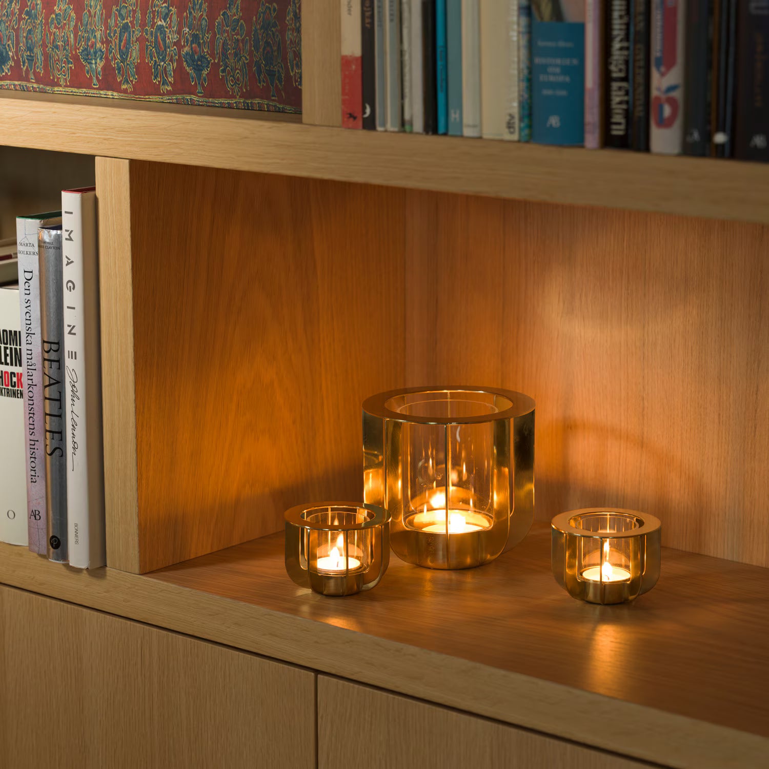 Jazz ist ein eleganter Kerzenhalter für große Teelichter, während Jazz Mini für klassische Teelichter geschaffen wurde. Beide bestehen aus edlem Messing mit einem Glaseinsatz. Sobald die Kerze brennt, zaubern die feinen Messingstreben faszinierende Schattenspiele und tauchen deinen Raum in ein warmes, stimmungsvolles Licht. Das Messing ist lackiert und bleibt dauerhaft schön – ganz ohne Polieren